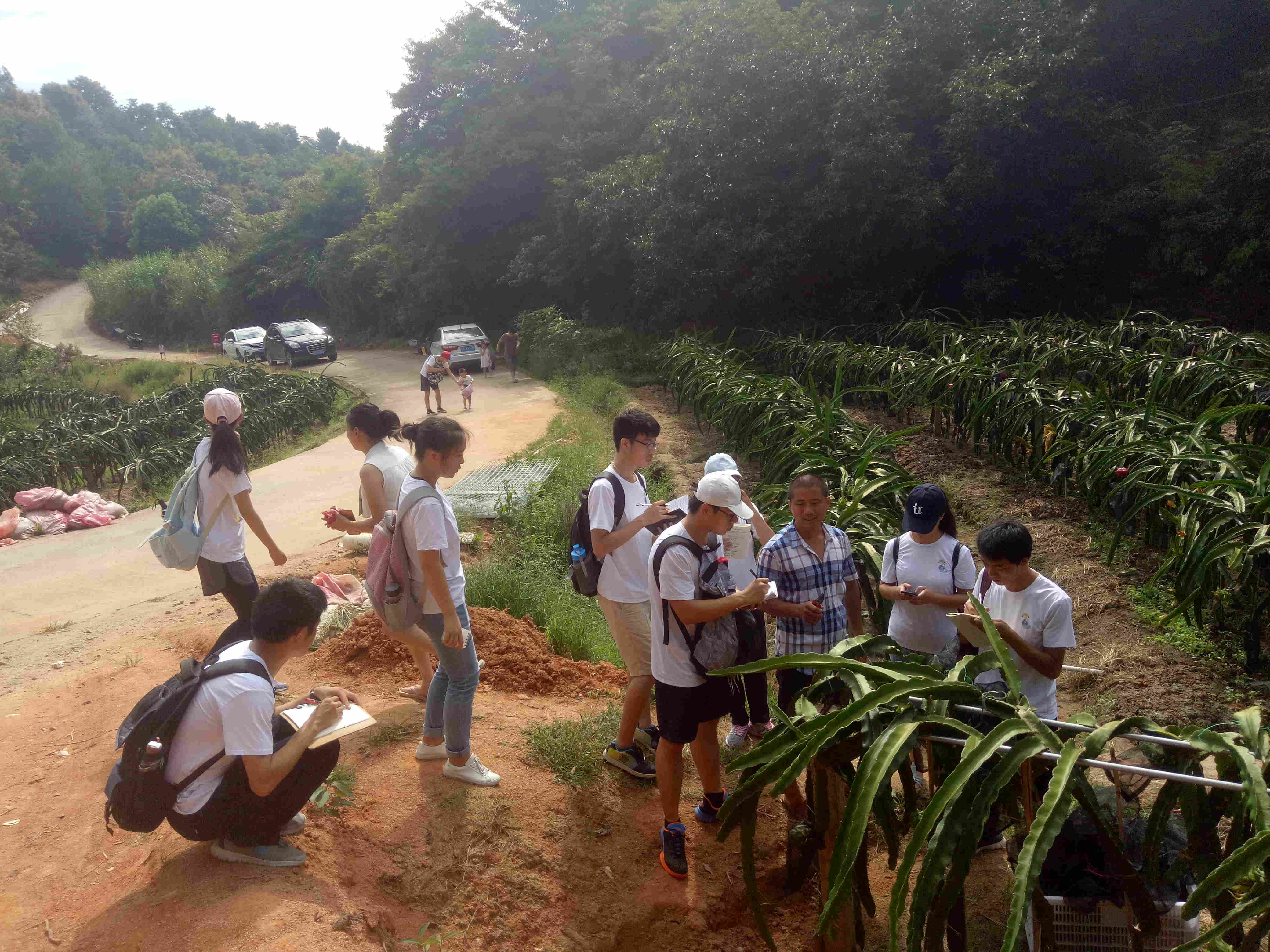 7月23日,队员们先后走访了火龙果种植园和莲雾种植园。通过对比两个果园的情况发现,两个果园所种植的“大红”红心火龙果和香水莲雾都是具有较高的经济价值的热带水果,这不仅符合当地的气候条件,也适应市场的需求。但两个果园水果也仅限于供游客采摘,销售范围较局限。鲜果的远距离销售,最主要的困难在于保鲜。除了可食用,莲雾还具有一定的园林景观价值。下午,大家深入村民家中,了解到由于水电站的建设,村民们的出行变得极不便利,许多人选择迁移或外出打工,随着村中人口的减少,村中的许多有年代感的类土楼建筑都坍塌了,令人惋惜。虽然村里的基础设施也没有很完善,但这里有着得天独厚的自然资源和具有文化底蕴的古建筑,相信如果将这片地方发展为生态休闲古村落,一定能取得重大的效益,村民的生活质量也会大大提高,也期望能够吸引外出的劳动力回乡发展,共同建设。