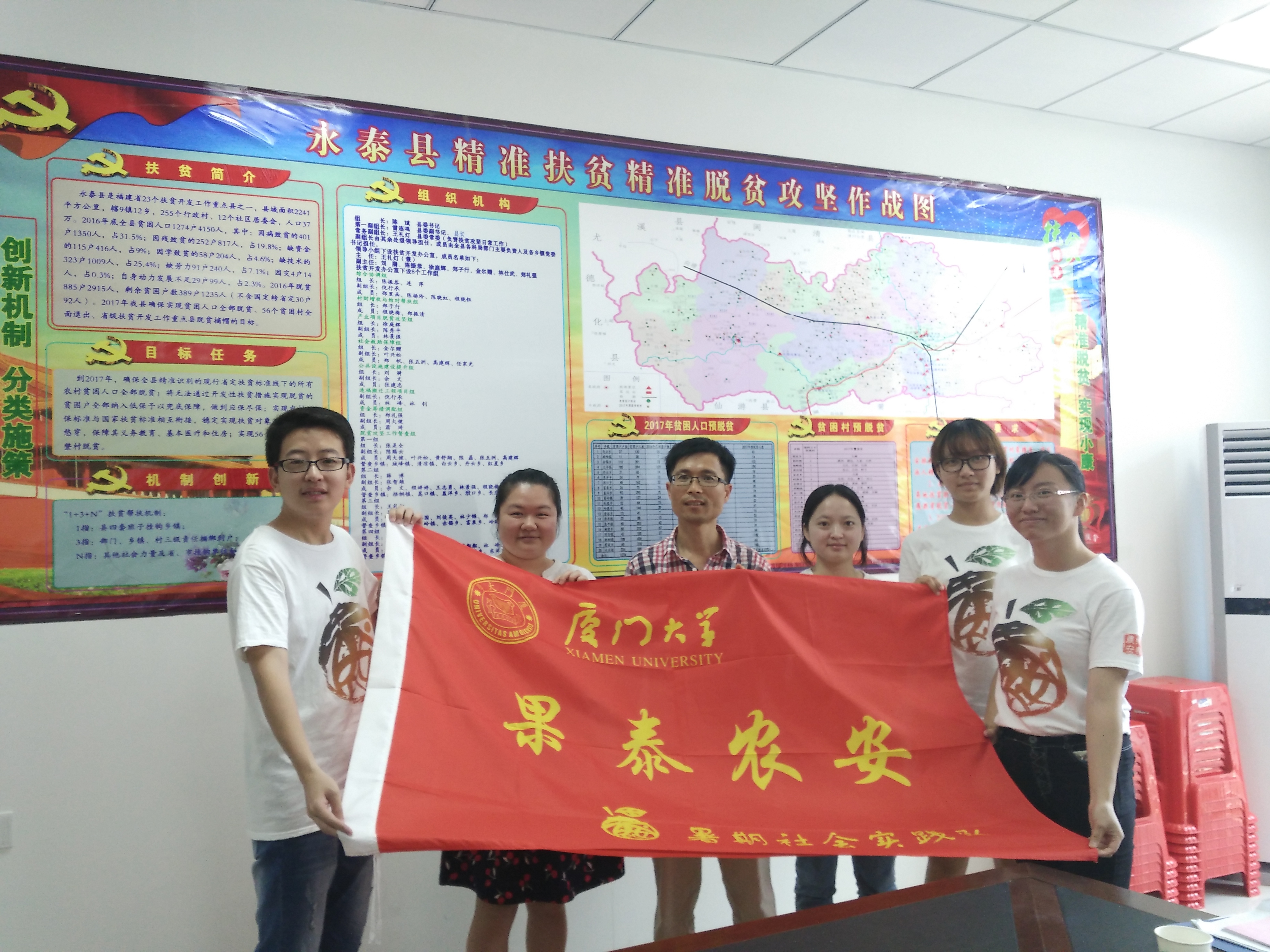 7月22日晚,“厦门国际银行”厦门大学经济学院、王亚南经济研究院“果泰农安”实践队顺利抵达福州市永泰县,开启了为期五天的社会实践活动。姚苑、黄世铭、黎芮琦、谢玉凤和李岢玥共五名成员陆续拜访了相关政府部门和多家涉李企业,得到了许多与芙蓉李和扶贫有关的资料,收获颇丰。