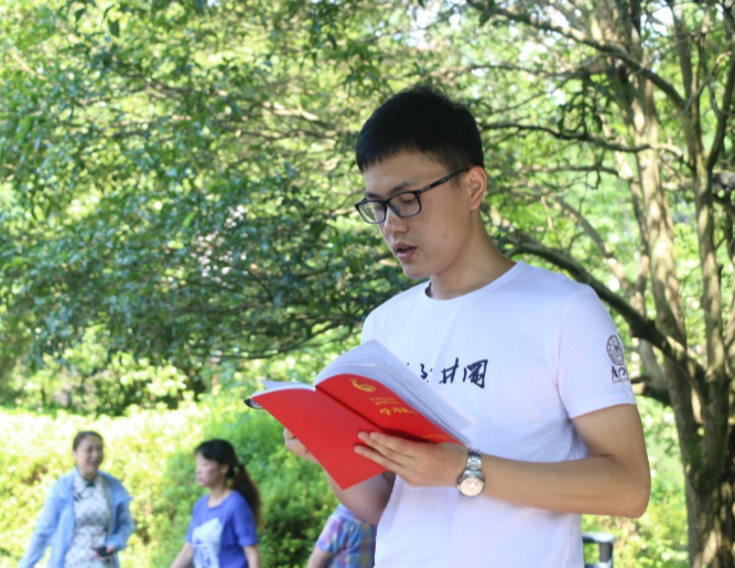 仪式后,实践团临时团支部召开了首次“一学一做”主题团日活动:以“朗读者”的形式集中学习厦门大学团委编印的《党的十八大以来习近平同志关于青年和共青团工作重要讲话汇编》。“朗读”重事,“者”重人,对于汇编中收录的2012年11月15日至2017年5月4日期间新华社和人民日报公开发表的习近平同志重要讲话全文或新闻报道共计9篇,12位实践队员分别朗读,并分享他们的故事和观点。这对当下阅读碎片化时代及每个学习者有很好的指导意义,主题阅读和学习三读:读每一个鲜活的团员,读每个团员的学习成长之事,读总书记讲话“原文”,可叫三读智慧。