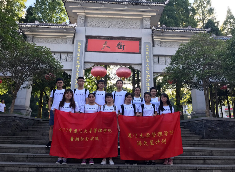 为深入贯彻高校共青团思想政治会议精神,扎实开展“一学一做”教育实践,切实增强管理学院学生骨干的先进性和光荣感, 7月23日,厦门大学暑期社会实践重点团队、管理学院“满天星”学生骨干培养计划成员暑期赴革命老区社会实践团(以下简称“实践团”)于井冈山上成立了临时团支部。