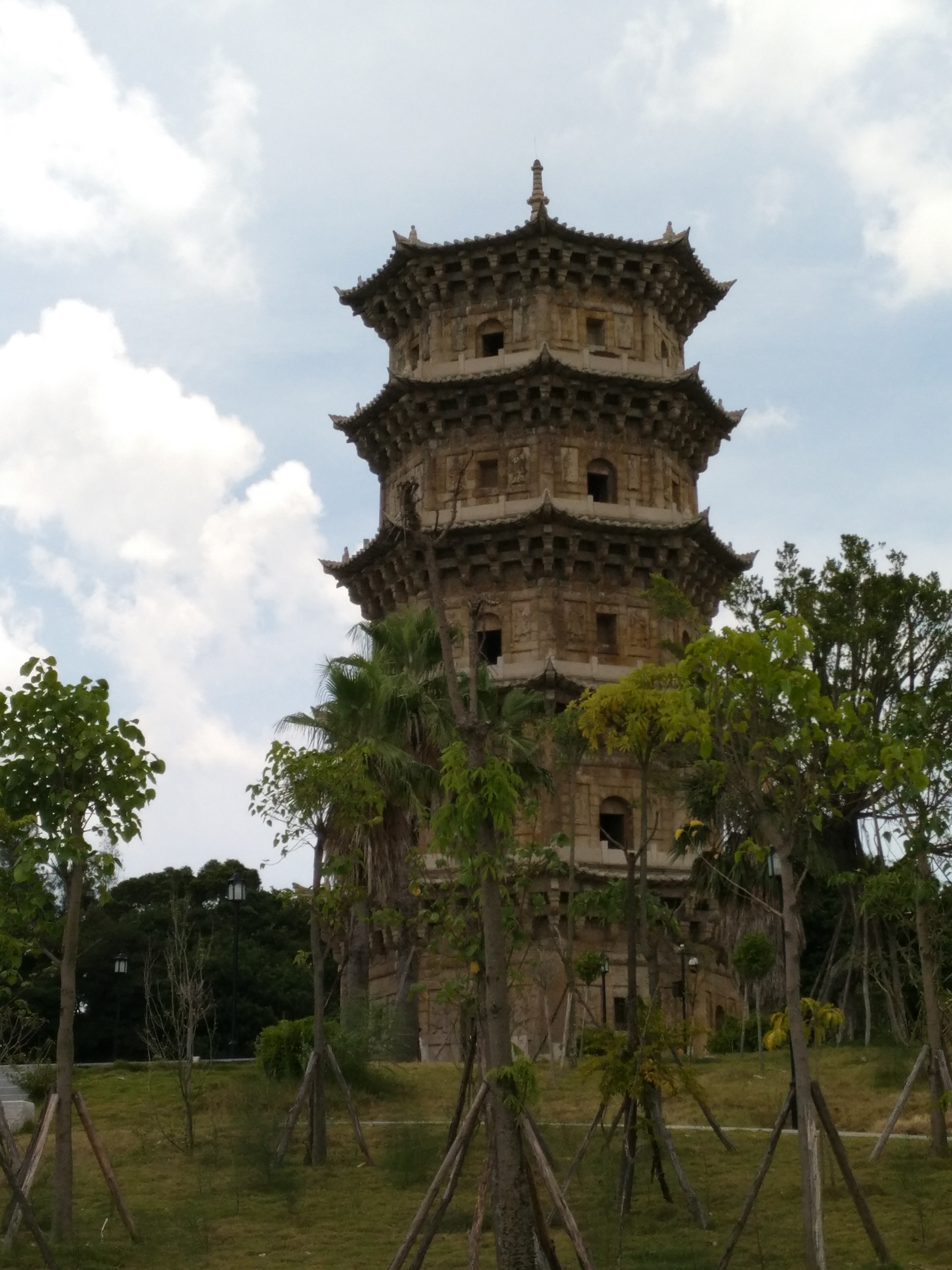 另一边,队长带着另一分队的同学前往六胜塔。六胜塔和周边的寺庙共同构成了六胜塔公园。这里,绿树环绕,潭水荡漾,走进去,仿佛走进了一个世外桃源。古朴的元代万寿宝塔矗立着,静听嘤嘤鸟语。实践队员们分头行动,向游客和当地居民都发放了问卷。健谈的周边住户对这里的变化如数家珍,他说,泉州是多元开放的城市,也是多种宗教共存的城市,各种各样的庙宇随处可见,发展经济不能忘了传统文化。调研途中,实践队成员也专门去看了古色古香的郭氏祠堂。