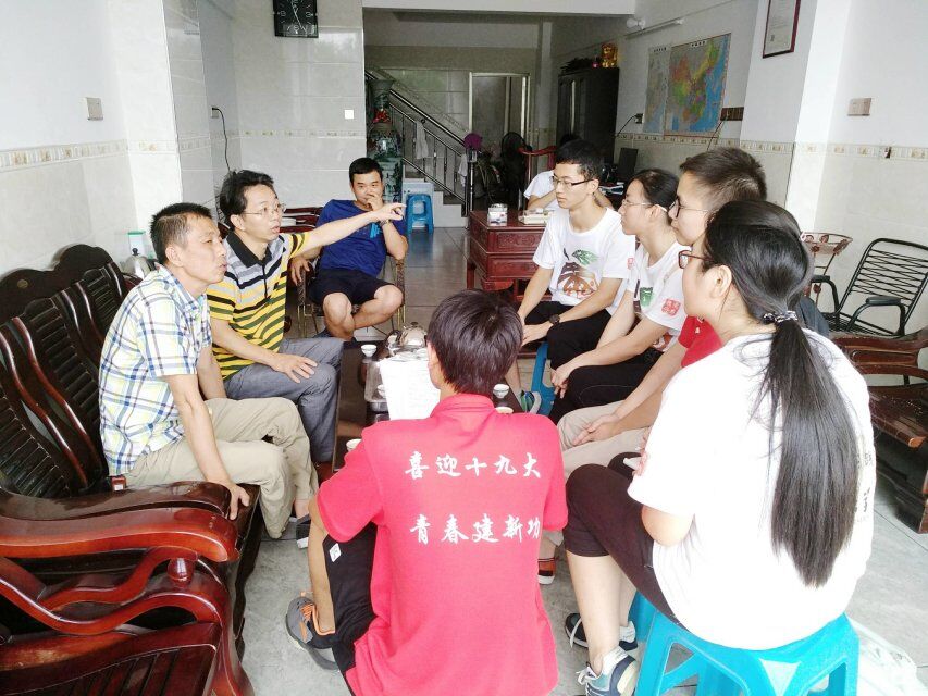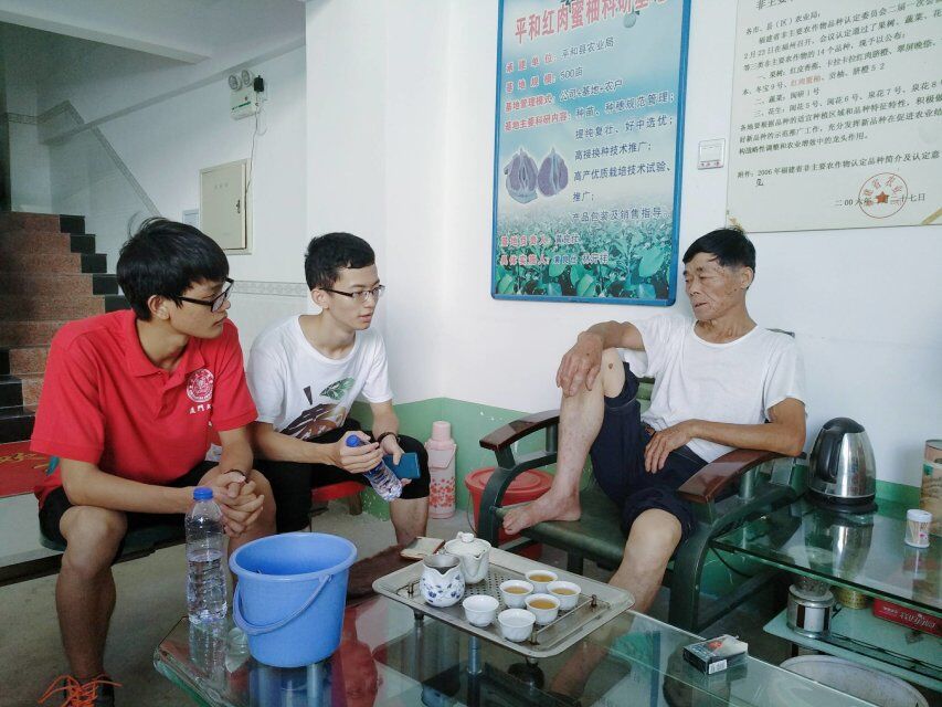 拜访贫困户时,实践队成员详细了解了他们的致贫原因、家庭年收入、家庭蜜柚种植情况等问题,得到了村民们的耐心配合。