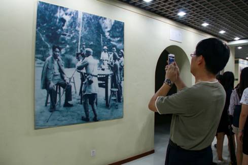 参观过程中,一张为毛泽东主席照相的照片迅速吸引了大家的注意。毛主席在延安时期留下的影像资料极少,因为毛主席以身作则,要求把珍贵的胶片留给前线。毛主席的执拗愁坏了新闻记录摄影师程默。在周恩来副主席的“默许”下,程默不得已对毛主席玩起了“偷拍”。快门一响,真相大白。主席笑称:“程默这个同志啊,虽然平时话不多,可你的镜头一点都不沉默。”