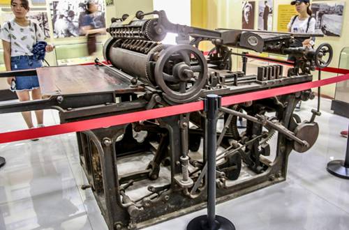 纪念馆里,安放着一台中央印刷厂印刷《解放日报》用的对开印刷机,原产上海。当年,为了将庞大的机器运入延安,面对国民党反动派在西安城“挨个搜身”的严密盘查,革命前辈们将珍贵的仪器拆卸成零件,分装在三口大棺材里,组成一支特殊的“送葬”队伍,有惊无险地将印刷机“送”到了延安。有了印刷机,根据地干部群众继续就地取材,用“马兰纸”、“麻油、松香与烟灰调制成的‘油墨’”等各类“土造”原料,凑齐了印刷报纸所需的全部“元素”。