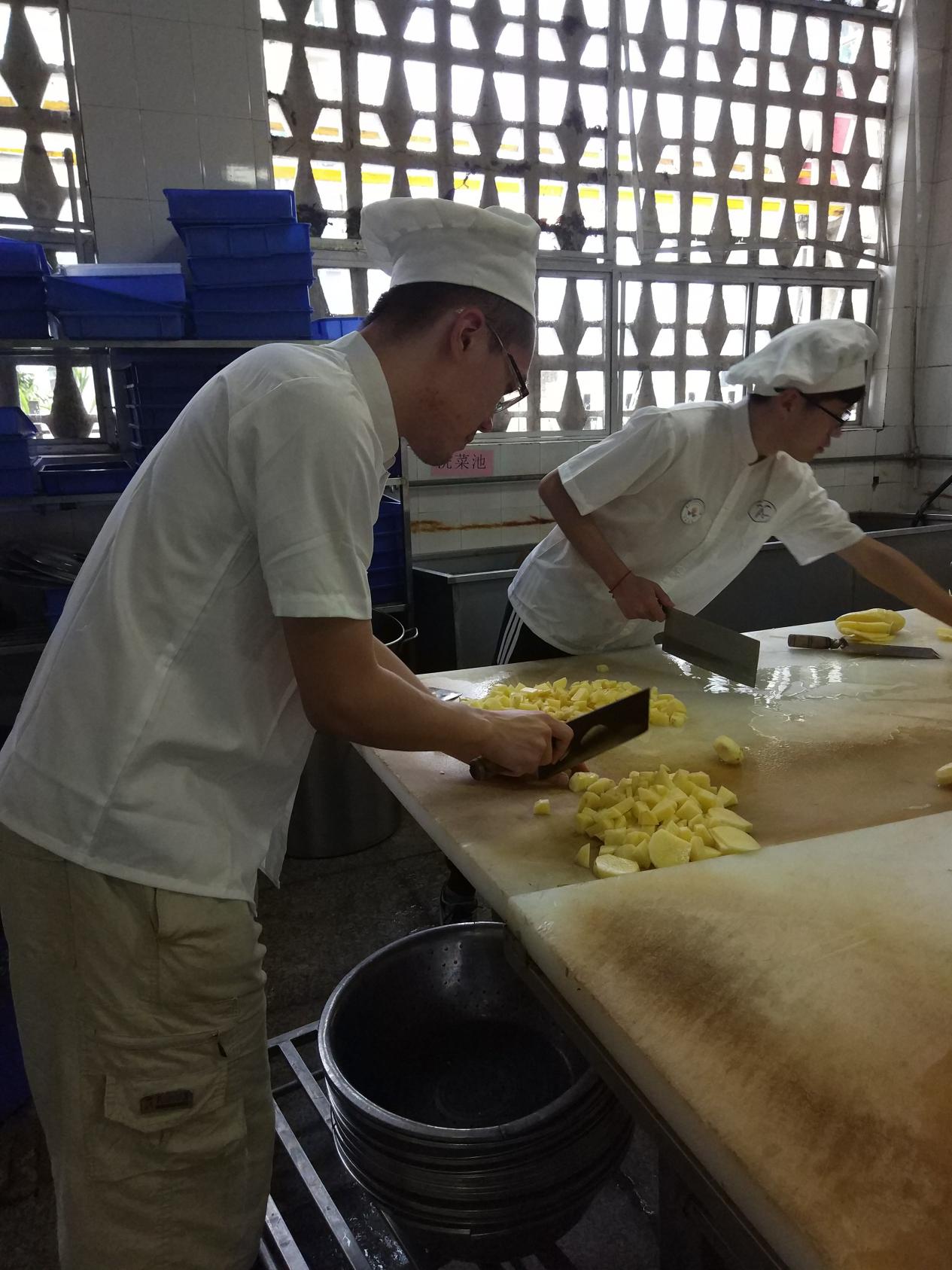 “食堂小分队”的同学们走进了海滨餐厅,从做馒头、削土豆、切菜等准备工作,到前台打饭打菜,再到收碗碟,一整天都穿着围裙,戴着口罩。平常食堂的工作看似轻松,可到了同学们自己手里才知道真的不容易。一不留神碗筷就堆积如山,一个马虎价钱又多算了一元,才打了几份饭菜手就举不起来。同学们感慨,正是有了食堂阿姨师傅们的辛苦劳作,才能有师生心中“舌尖上的厦大”的美誉。