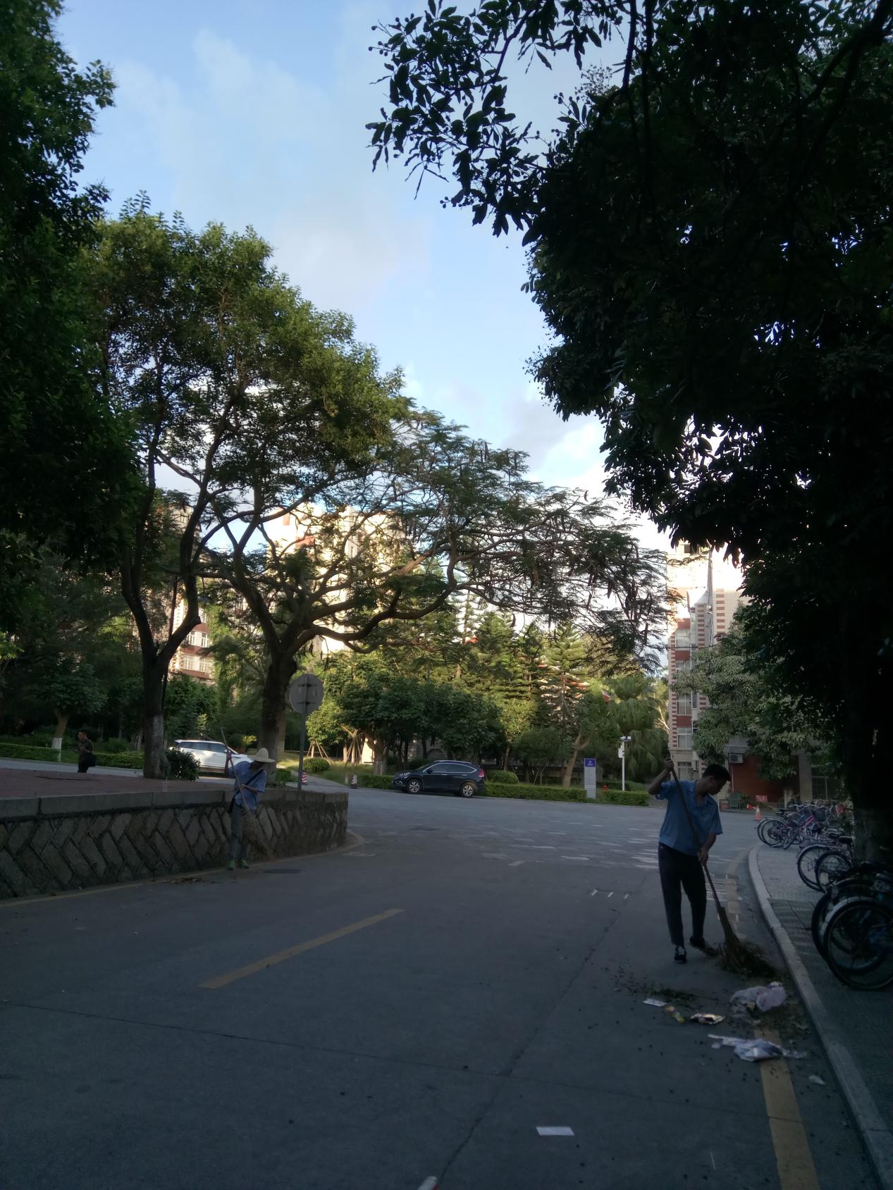 “绿化保洁小分队”的同学穿上工作服,戴上草帽,深入到了学校的各个角落。他们清晨五点集合,天还没亮就在清扫校园的道路;他们顶着烈日除草浇水,施肥护苗;他们跟着师傅们一起搬运垃圾。可当队员们累的直不起腰时,才发现他们的工作量还不足师傅们的一半,而且这些苦和累都是师傅们的日常工作。队员们也真切地感受到,当同学们还在睡梦中的时候,校园已经在发生变化。
