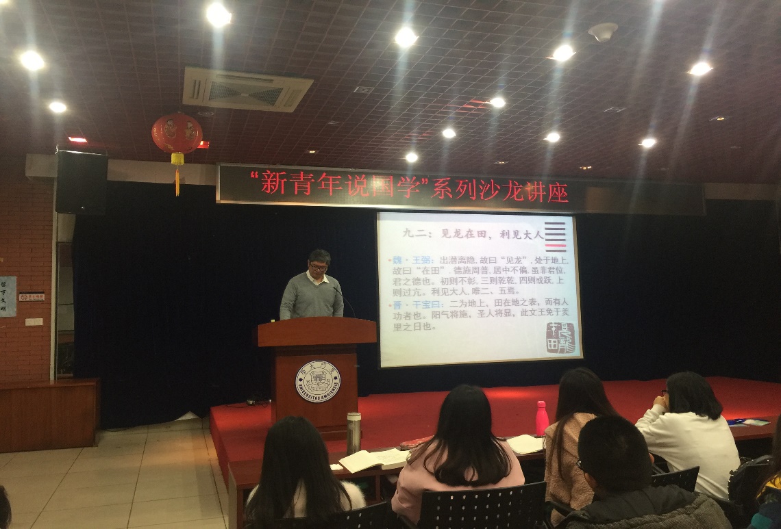 2017年3月11日晚七点,“新青年说国学”系列沙龙讲座于自钦楼二楼多功能厅顺利举行。本次活动由共青团厦门大学委员会承办。本长讲座邀请到人文学院中文系张惟捷副教授以“乾”卦为例,为我们解读《周易》的多重面向性。