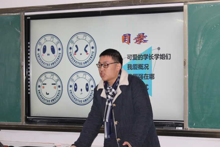 宣讲分为几个部分,第一部分自我介绍,从安师大附中出身的厦门大学学生各个文武双全,简历也十分耀眼。第二部分环境介绍,在厦门大学版《南山南》的歌声中,所有人欣赏到了芙蓉湖,芙蓉隧道,嘉庚楼等美景,谈到天气的时候队长直接出嘴“我们立冬三十度”high翻全场。第三部分学校特色介绍,通过大量的数据和人物,同学们明白了厦门大学的特色专业和综合实力,并且表现出了浓厚的报考兴趣。