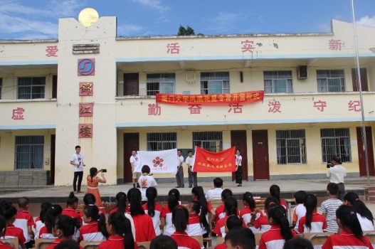 义圩镇中心小学凤凰花夏令营开营仪式由带队老师郭建群主持,仪式初始由常务副镇长麻建武宣布2016厦门大学凤凰花夏令营开营,义圩镇中心校校长梁干、义圩镇人大副主席黄焕信为凤凰花夏令营授旗,接着由带队老师、志愿者代表为各位领导赠送纪念衫。