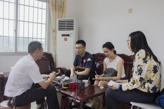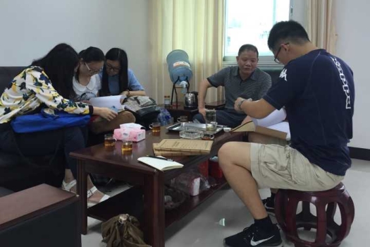到达龙岩市龙潭镇后,队员们先走访了枫林村村主任家了解村子的整体情况。据主任介绍,枫林村有5个自然村、15个村民小组、2100余名村民。由于村内的矿产资源丰富,前些年煤炭加工及运输行业发展比较迅速;而近期由于行业大形势的跌落,部分村民选择外出打工,开始从事不同的行业。对于由此带来的被抽样居民不在家的情况,村主任也谈了他自己对于抽样方法的想法。随后,小分队告别枫林村村主任,走访了村子里几家居民进行具体情况的了解。
