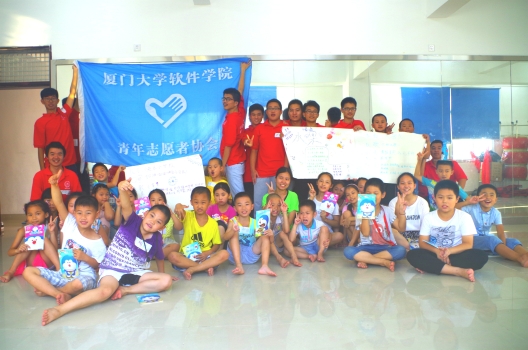 7月初,“厦软童年”暑期社会实践队再次启航。实践队获评学校2015年优秀实践队,今年获得学校重点立项。“厦软童年”实践队是由软件学院2014级本科3班团支部发起并组织的实践队。实践队主要协助社区开展几场大型的针对外来务工子女的夏令营活动,同时为社区的一些其他小型活动承担现场志愿服务工作。7月15日下午,实践队来到蔡塘社区,开启了“快乐暑假-有爱相伴”暑期夏令营活动。