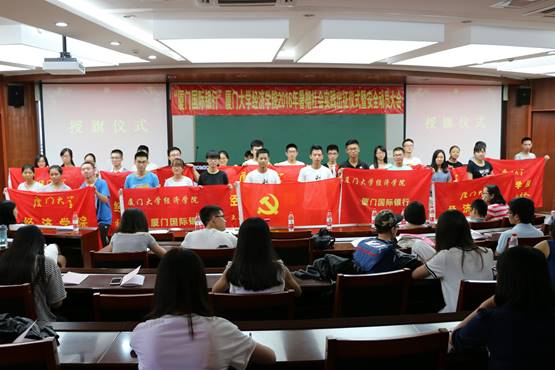 7月7日下午3点,“厦门国际银行”经济学院2016年暑期社会实践出征仪式暨安全动员大会在经济楼N303顺利举行。院团委书记何丽苹,团委副书记魏艳、陈启妍,各系辅导员以及即将出征的实践队代表们参加了出征仪式。