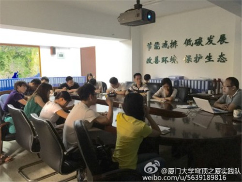 7月24日,厦门大学穹顶之厦实践队队员们与清华大学环境学院携手,一同前往厦门市环保局交流。通过环保局薛主任的介绍,大家了解了厦门市从“绿色厦门”、到“生态厦门”、再到“美丽厦门“三个阶段的转变。队员还与薛主任就空气质量和室内PM2.5问题进行了深入交流。7月26日上午,穹顶之厦实践队在厦门大学翔安校区与来访的福建师范大学地理科学学院Geo Freshers 暑期社会实践队进行了活动内容上的交流与探讨,就厦门市空气污染调研活动确立了合作方案,使各自的实践内容得到进一步的细化和丰富。