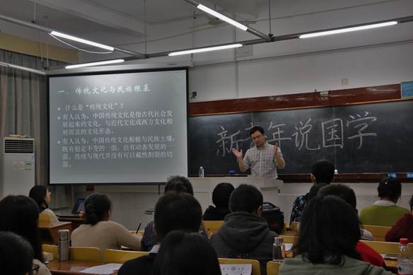 张侃教授风趣幽默,学识渊博,使同学们在轻松的氛围中获得对传统文化的新认识以及许多生活的启发。他呼吁同学们秉持人文情怀,走出书斋,走向精彩的生活,走向广阔的世界,去追寻与学习传统文化。