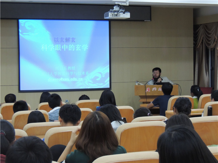 11月29日晚七点半,由共青团厦门大学委员会主办、厦门大学团委青年媒体中心承办的“新青年说国学”系列沙龙讲座之“以玄解玄,科学眼中的玄学”在联兴楼207举办。本次讲座的主讲人为曾当选“2014我最喜爱的十位老师”,精通易理、博学多才的周昌乐教授。