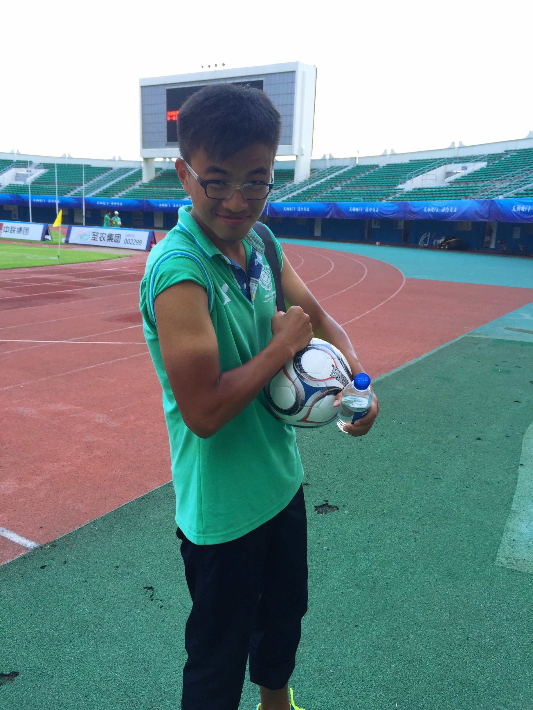 青运会期间,梁海淋作为竞赛部球童组的一名志愿者,主要工作是在场外及时的给球员传递他们踢出界的球,以保证比赛顺利流畅的进行。除此之外,他还兼任旗手,在每场球赛开始前进行与其他志愿者共同完成出旗仪式。对于大多数志愿者来说,8月15日进行的第一场比赛才正式上岗,而他早在7月25日测试赛时就提前来到岗位熟悉工作了。他跟着体育局的负责老师学习出旗,弄清楚每一步的流程,计算时间,到正式赛时,已然成为一个小“培训师”,可以独立带领护旗队的志愿者完成工作了。海淋说,“在青运会当志愿者,不仅可以为运动员服务,还‘get’到很多新技能,一举多得,‘性价比’超高!”