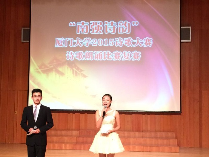 10月11日19:00,“南强诗韵”厦门大学2015诗歌大赛诗歌诵读比赛复赛在艺术学院音乐厅举行,共有18位参赛选手脱颖而出,入围决赛。