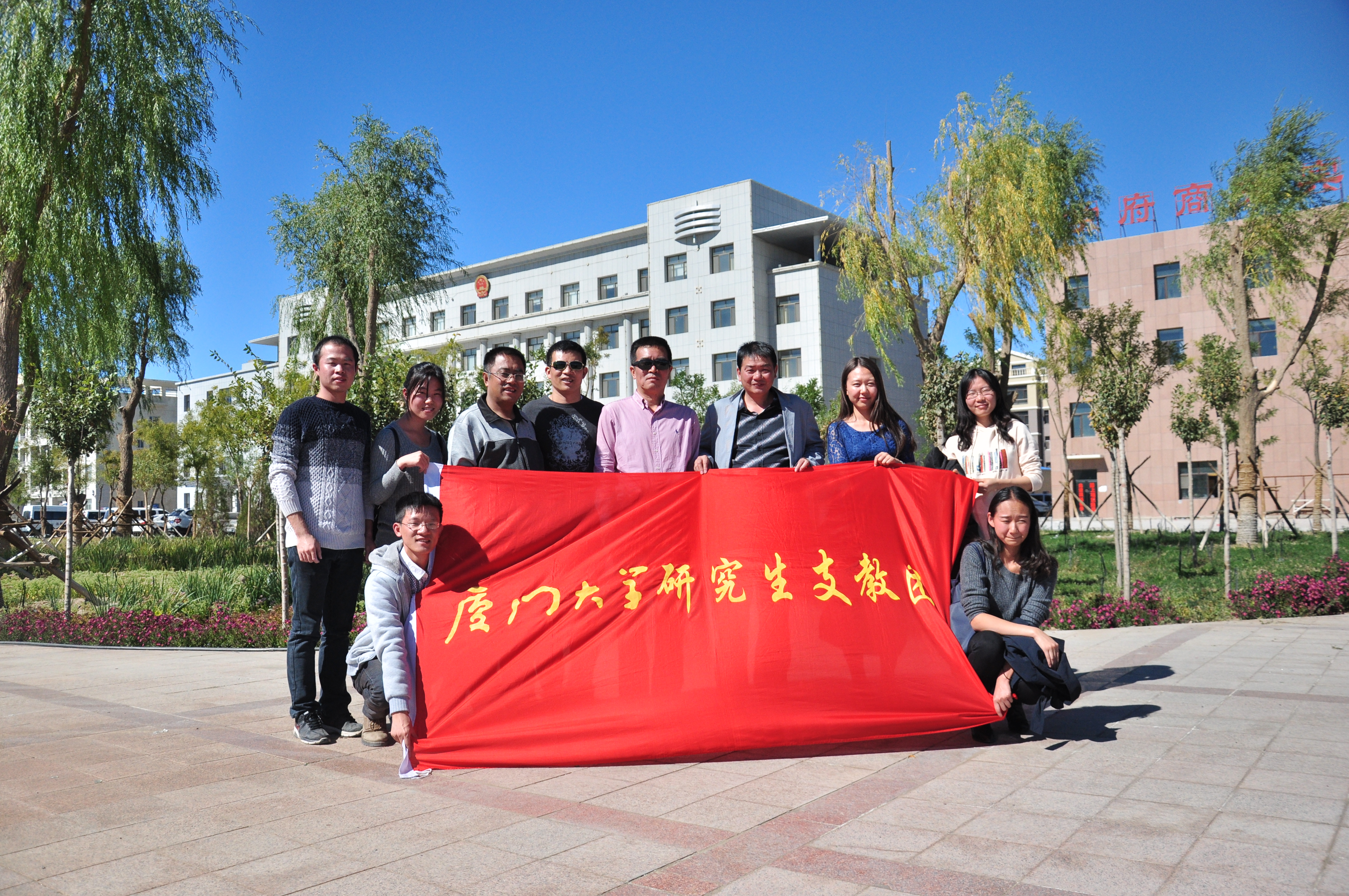 金能明书记一行早先在宁夏已经慰问过厦门大学研究生支教团在宁夏支教的队员,得知还有另一队在内蒙古额济纳旗支教,便赶在中秋佳节前夕给额济纳旗的队员送来节日的问候