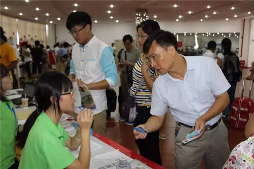 相比之下,环境与生态学院就低调许多。一张学院海报,一块说明注册流程的展板,构成简洁大方的注册点。但环境与生态学院的志愿者们甚为暖心:正午时分步行至西侧门去接迷了路的新生,燥热的午后挨间访问宿舍、关怀新生等诸如此类的实际行动,让新生实实在在地体会到了“新家”的温暖。