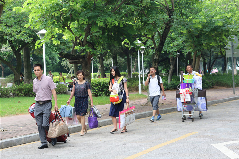 新生对于校园生活充满期待,对于大学四年,有的同学已经绘下了完整的蓝图,学业要达到何种程度、课余生活应该怎么安排他们都心中有数。也有同学并没有详细的目标,只有对于生活的大致要求,“没有很明确的目标,只是想过得更充实,想在很充实的学习的课余还能做一些有意思的事情、参加一些有意义的活动,不要让自己闲到躺在床上玩手机。”来自新闻传播学院的柯同学是这样安排大学生活的。送孩子进入大学校门的新生家长对孩子也有许多期盼,许多家长希望孩子能在大学得到好的成绩,但所有家长更希望的,是孩子们有一个开心的、值得回忆的大学生活。新生卢同学的妈妈陪孩子来报道,谈起对孩子的期许,她说道:“希望她在这个校园里能过得快乐,和同学能相处和谐,也希望她在求学的道路上能有所成就。” 至26日下午,迎新工作进入尾声,绝大部分新生已经拿到军训服装,在宿舍阳台上,许多洗净的军训服装高高飘荡,新生们整装待发,准备迎接军训,这开学的第一堂课程。