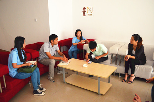 下午,实践队员们则采访到了基地负责宣传工作的隆老师和周老师。通过对他们的采访,队员们了解到了更多关于基地微平台建设的信息。据介绍,基地的微信平台建设通过一年的建设,目前已经有了约15000的粉丝量,微博也达到了23万的粉丝量。但是目前在微宣传方面依然存在着很多问题,其中最严峻的便是管理人员的紧缺。据周老师介绍,目前只有一个老师负责宣传工作,因此没有办法对微平台进行针对性、系统性的建设。结合老师所说的情况,队员们向基地提出了自己的意见和看法,并对平台改善方案的可能性进行了详细的讨论。