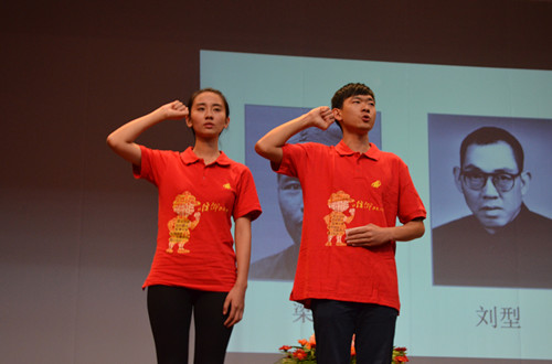 晚上,井冈山教育基地更是请来了两位红军烈士梁金生、刘型的子女——梁汉平先生和刘松柏女士,他们也是一对老夫妻。这对夫妻在现场回忆了他们儿时的回忆,并将他们收集到的有关父母的故事向学员娓娓道出。保育院转移、躲避轰炸、简朴的婚礼,一个个故事无一不体现了昔日红军的优良作风和共产党坚定的理想信念。在互动环节,发表感言的学生数度哽咽,革命的精神、红军的家风,如同微小的星火,却足以令人感动,令人敬仰。在最后,“微动井冈”实践队的张冰同学代表全体实践队员上台鲜花敬礼,并带领学员进行了庄严的宣誓。