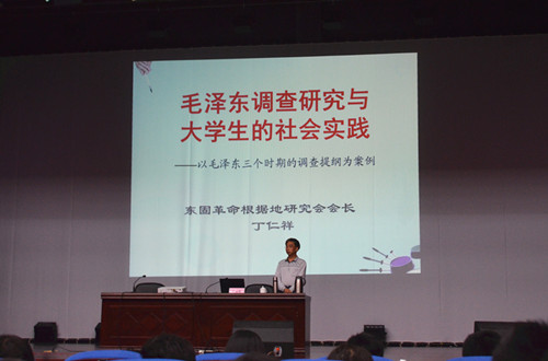 早晨,在升旗仪式和晨读结束后,实践队员就来到了综合楼报告厅,进行第一场专题讲座的学习。该场讲座的主讲人为东固革命根据地研究会会长丁文祥,讲授内容为“毛泽东调查研究与大学生的社会实践”。丁文祥老师从“什么是调查研究”开始讲起,而后介绍了毛泽东在广州进行调研的36个调查项目,强调了调查过程中细致与全面的重要性。之后,丁文祥老师向实践队员们讲述了毛泽东青年时期调查研究的主要实践及其实践成果对于中国革命的重要贡献。在现场,丁文祥老师还同学生们一起探讨了在新媒体语境下,网络新闻真实性的问题。同学们积极与老师互动,现场气氛十分活跃。