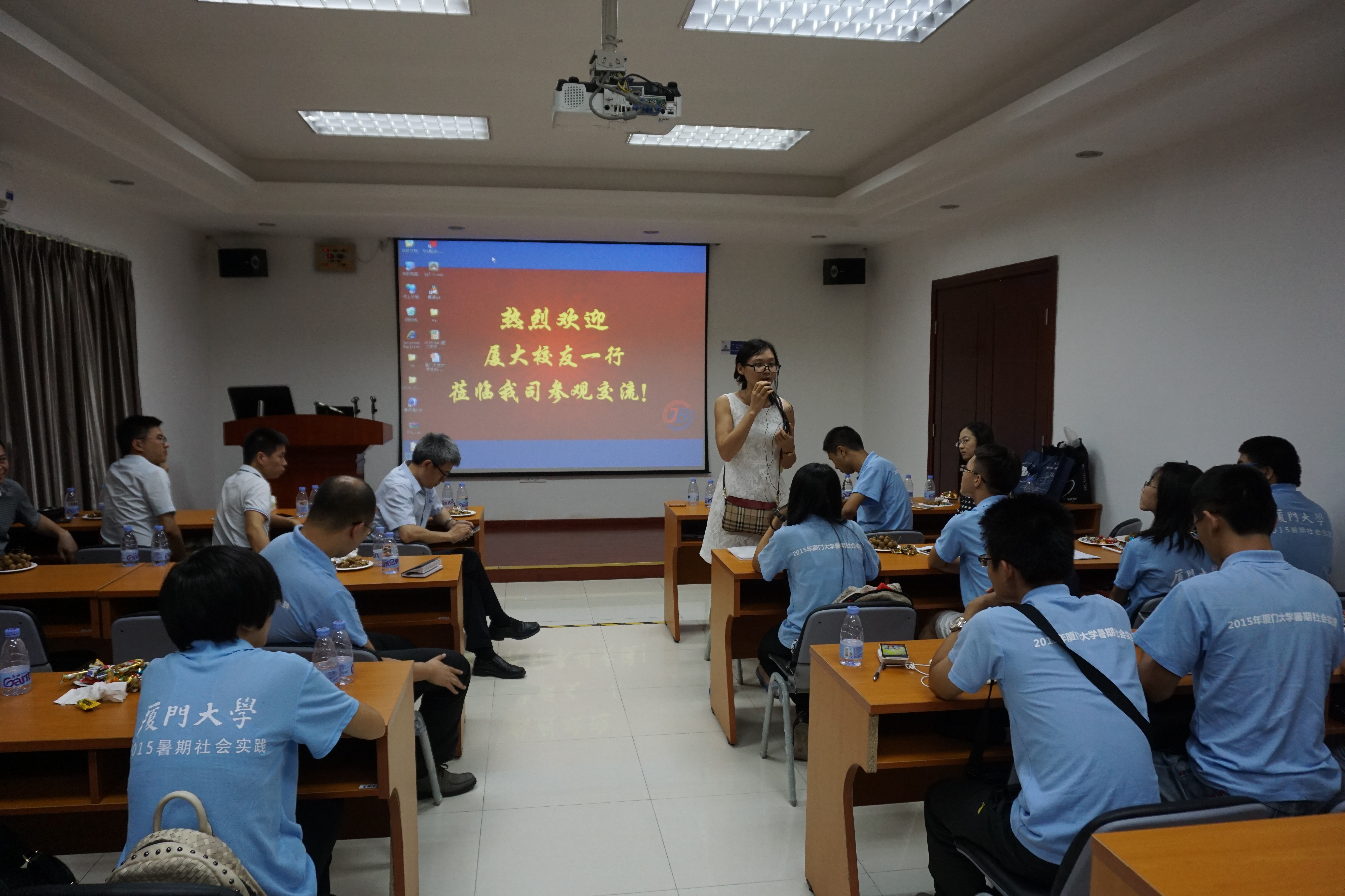 广州市晶邦液压密封技术有限公司董事长、厦门大学广东校友会监事长、化学系79级校友黄国典代表厦门大学广东校友会向实践队的到来表示欢迎,并向队员们详细介绍了公司基本情况、产线管理、产品控制等运营、管理情况,并带领大家进入一线厂房参观公司产品的生产过程。