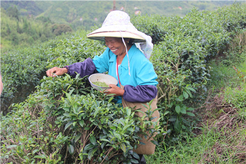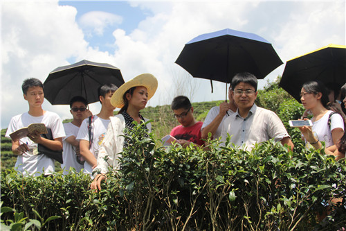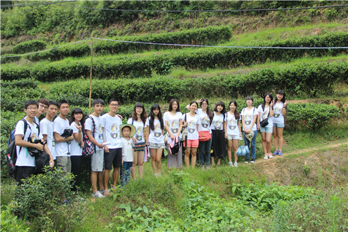 随后,实践队员又来到位于一片青翠蓊郁的茶园中间的明艳茶叶专业合作社。明艳茶叶专业合作社地处海拔880米的古田、宁德、屏南三县的交界处,茶园方圆百里,深藏在云雾缭绕的深山,是生产加工各类名茶的绝佳之地。合作社的负责人余海燕热情地接待了实践队员,她带领大家走进茶园,沿着采茶女工每日所走的路线介绍茶园的基本情况。这里种植的茶叶多种多样,主要有绿茶、红茶和白茶,所种植的红茶与毛峰还曾经获得宁德市茶王赛的名优茶奖和金奖。合作社拥有茶园800亩,高标准有机良种茶园基地700亩,年销售额达100多万元。回到家中,余海燕还特地拿出茶园自产的红茶与绿茶请实践队员品尝。