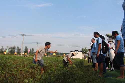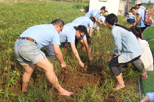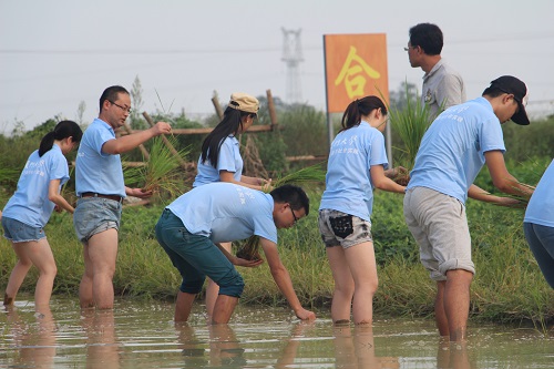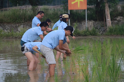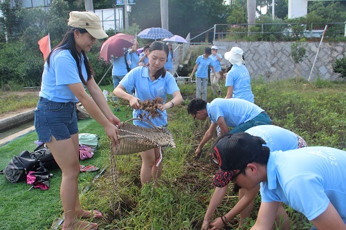 “三农”问题一直是全国工作的重中之重。2015年中央一号文件发布,一如既往地关注“三农”问题。为积极响应国家的号召,促进大学生关于“三农”问题的有益思考,7月28日下午, 厦门大学外文学院研究生“囊萤之光”暑期实践队在竹坝学校副校长吴志荣老师,带队老师乐无恙的带领下在竹坝学校门前的承包试验田集合,体验插秧、拔花生等野外实践活动。