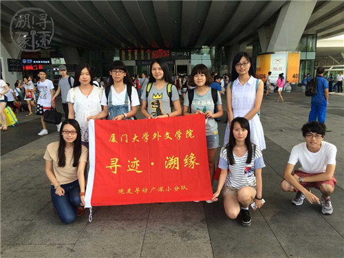 2015年7月27日,厦门大学外文学院“寻迹·溯缘”院友寻访暑期社会实践队于厦门大学思明校区集合出发,踏上“寻迹”之路。2015年7月,在外文学院党委副书记郑新风老师、杨云良老师的指导下,“寻迹·溯缘”院友寻访暑期社会实践队正式成立;并于院友信息整理完善、访谈策划联络等行前准备就绪之后,在暑假伊始以小分队形式分赴上北京、上海(南京),深圳(广州)三地,开启了本次“寻访·传承”社会观察行动的征程。