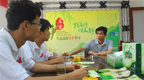 随后,实践队在建宁县统计局收集了历年的农业、工业数据。因时间原因,实践队兵分两路。第一分队的队员们开赴水南将军坑,与孟宗笋业总经理、福建省十届人大代表廖品贵先生面对面进行交流。交流中,廖先生以孟宗笋业为例,犀利客观地向队员们剖析了建宁县发展农产品电子商务的几大难点。其中,物流贵、农产品单位价值低成为了农产品电商发展的头号问题,一直困扰着企业、影响企业的发展。