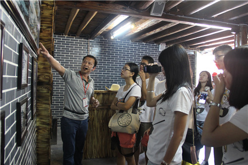 一大早,实践队首先来到古田翠屏湖畔的美丽乡村——坂中村。热情的村支书首先带领实践队参观了坂中村移民文化馆。1958年,古田人民为了保障刚刚诞生的中华人民共和国有充足的电力供给,献出了有着千年灿烂文明历史的古田县城,在其上建设代号为“101”的第一个五年计划重点工程古田溪水力发电厂;移民文化馆正是为纪念这一历史事件所立的。该馆共两层:一楼分为三个版块:“别梦依稀”、“光耀库区”、“美丽坂乡”;村支书详细地讲述了坂中村移民的历史渊源,展区的图片和文字也向大家一一展示了坂中村为“一五”计划作出的巨大贡献,以及党和国家对移民的关爱。二楼的展区被划分为一个个小房间,更为详细地讲述了坂中村在抗战、革命、改革过程中的历史事件。在中国人民抗日战争暨世界反法西斯战争胜利70周年之际回顾这一历史,显然有着特殊的意义:历史看似已远去,但遗留的教训更值得铭记。在今天,当代大学生要以同样的热血投身现代化建设和改革浪潮,学习坂中村村民们的奉献精神。