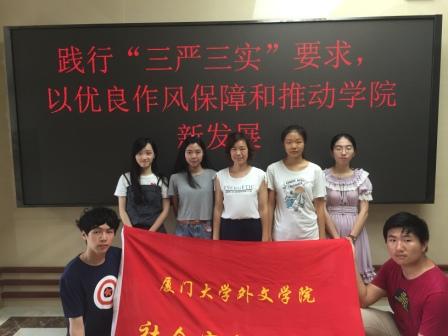 2015年7月25日一早,“寻迹溯缘”院友寻访上海、南京小分队出发前往上海,在八个小时的车程后,在磅砣大雨中于傍晚抵达上海。7月26日进行了第一天的院友见面与访谈活动。此次活动以座谈的方式进行,包括带队老师院团委副书记、2014级本科生辅导员戴晓燕老师和兼职辅导员梁小晏老师在内聚会人数达至14人,院友包括近五年内毕业的2006级至2011级本科毕业生。此次聚会为现工作生活于上海的跨届院友提供了一个交流联络的平台,也为实践队补充近几年毕业院友的信息创造了一个机会,首先戴晓燕老师向院友们介绍了学院近年来的发展情况并表达了学院对他们的关怀之情,实践队员向院友们赠送了外文学院宣传册,让他们可以更近一步了解母院的发展。