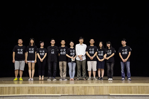 建南大会堂幕布缓缓收起,张艾弓老师与学生主创合影留念。