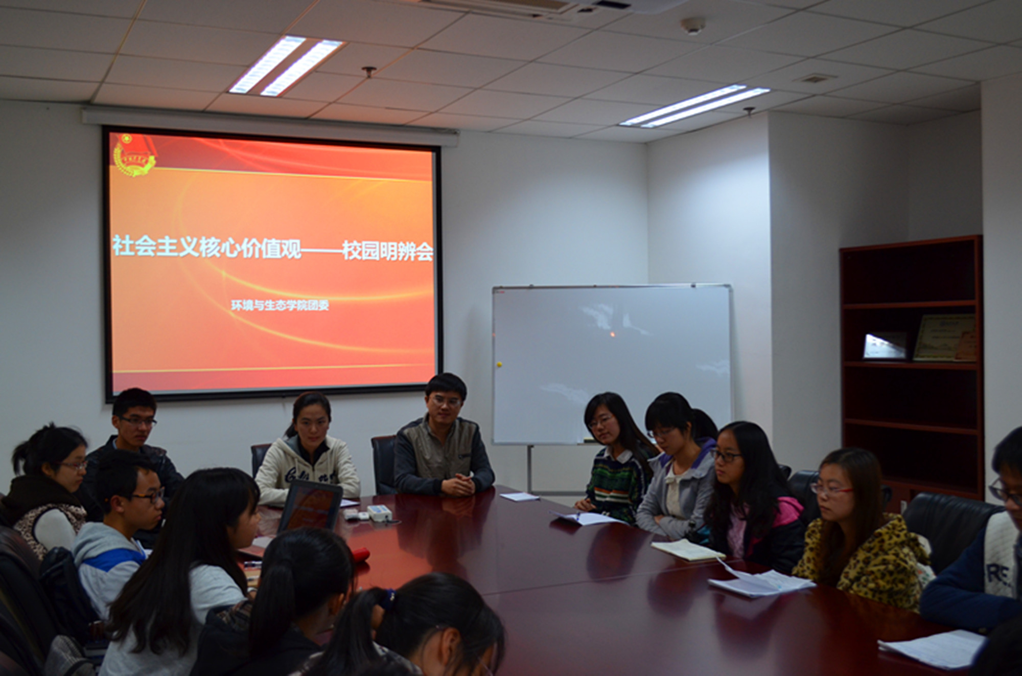 12月2日晚,环境与生态学院团委在翔安校区金泉楼A220会议室举办了社会主义核心价值观明辨会。院团委书记林明华、团总支学生会成员以及各个团支部代表参与了这次会议。