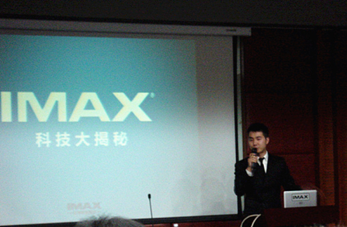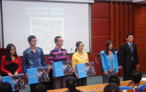 随后,IMAX公司大中华区市场经理司拓先生为大家做宣讲。司拓先生首先科普了一些有关IMAX的知识,让大家对IMAX有了一个整体的概念。而后,司拓先生分别从画面亮度、对比度方面将IMAX和普通影厅做了对比,又就音响结构和影厅结构俯瞰图做了深层剖析,带大家了解了IMAX电影使人“身临其境”的奥秘。宣讲中,司拓先生极力褒扬11月12日上映的IMAX影片《星际穿越》,并介绍了其导演克里斯托弗·诺兰,然后播放了其中震撼人心的几个片段,并带大家看了一些影评。