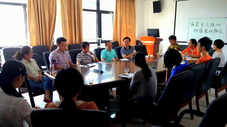 10月27号上午,物理与机电工程学院党委副书记张秀丽、郑镇锋与13位专兼职辅导员齐聚一堂,参与社会主义核心价值观主题明辨会。大家畅所欲言,在思想上激情碰撞,分享了各自对培育和践行社会主义核心价值观的理解;同时理论联系实际,围绕学期初学生工作的整体情况、社会主义核心价值观主题宣传月的活动安排,进行了深入的交流。