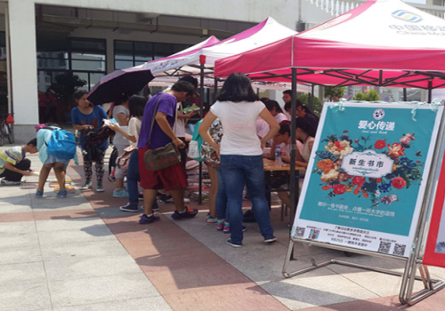 9月25日中午,由厦门大学学生社团联合会翔安分会主办,蔚蓝社、格致协会、西部梦想社团协办的新生书市活动在翔安校区一期食堂门口火热举行。