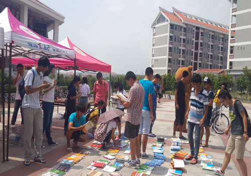活动一开始就吸引了新生们的目光,他们纷纷挑选自己所需要的书籍,只要作简单的信息登记后便可获得。同时活动现场还准备了精美的书签送给来逛书市的同学们。学长学姐不仅根据新生所学专业及学习兴趣为他们推荐书本,而且耐心地回答新生们关于学习方面的问题。烈日炎炎下,大家的热情不减,新生们越来越多,登记引导工作也变得更加忙碌。领书的新生络绎不绝,不多久,现场准备的500多本书便已所剩无几。