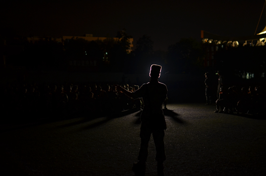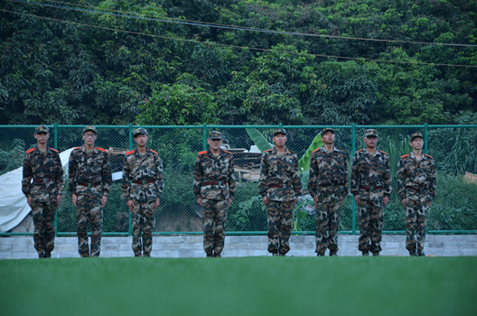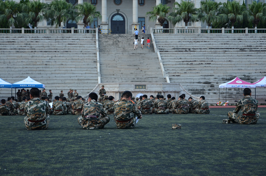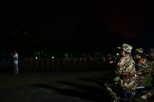 傍晚六点半结束训练,七点半又重新开始,短短一个小时的休息后,同学们返回训练场,开始进行晚上的拉歌活动。
