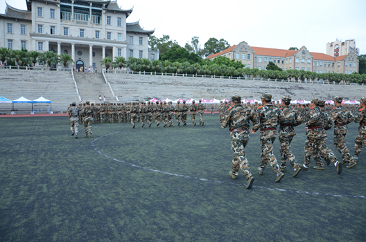 上弦场,军训的同学还在继续着跑步动作的基本训练。今天的要求比昨天更高,教官开始强调行列的整齐性。