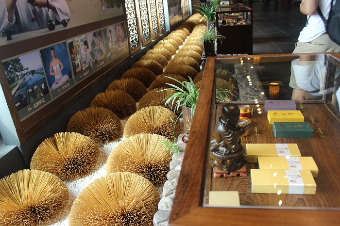 8月26日上午,实践队走访了彬达制香公司。刚一走进园区,队员们就闻到空气中沁人心脾的香气。彬达有室内室外两部分展厅,室外为传统手工制香的流程展示与晒香场,室内则为各式各样的香制与香道表演。一路走来,队员们见到了传统的手工香制作工具,如磨盘,以水车牵引的碾香槽等。在装饰的古色古香的室内展厅,队员们则见识到了各具特色的香产品,有普通的线香,盘香,也有实用的车载香;用于焚香的各式香炉,从传统的博山炉,到新式的高山流水造型香炉,均是精巧雅致,无不体现了精致的香文化。