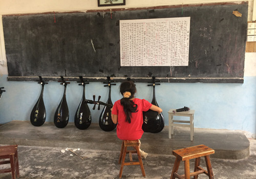 在参观四都小学的南音教室时,一排立在墙边的琵琶吸引了队员们呢的注意,每一把琵琶上都刻着不同的名字:清平乐,珠落盘,碧云天,仿佛是每一把琵琶都有着不同的故事。四都小学只是泉州政府试点南音教学的一个小小缩影,时代的大潮向我们袭来,南音的传承之路绝不会一马平川,但是相信南音教育的力量必然会让这些祖国的花朵托起文化传承的太阳!