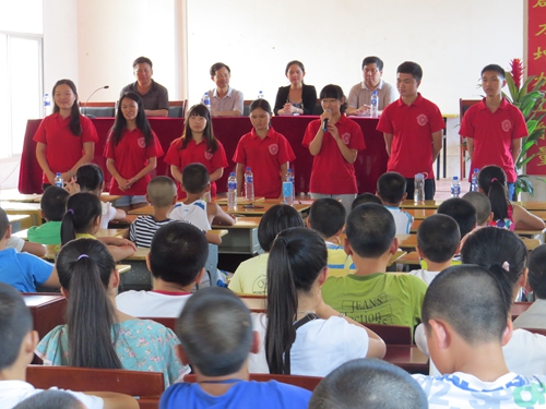 短短的七天一闪而过,不知不觉就到了离别时分。7月30日下午的结营仪式上,孩子们整齐安静地在教学楼前的空地坐好,支教队员们逐一上台说出自己的心里话,包括自己对这五天活动的总结,也包括他们对孩子们的期望和祝福。往日里万分活泼的孩子们此时都仰着稚嫩的小脸认真地听着,这一次,没有一个人说话,更没有一个人分神。同时,队员们为同学们送上了小礼物——一百一十张承载着支教队员们衷心祝福与热切期望的明信片。由于白天要上课,这些明信片都是队员们在晚上熬夜赶制,每一个字都凝聚着几天朝夕相处的浓厚情谊!孩子们也纷纷上前为自己心中的大哥哥大姐姐们献上了自己精心准备的礼物,有自己心爱的故事书、有明信片、有漂流瓶,还有钢笔。