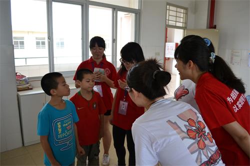7月28日上午,在翔安区珩厝小学王龙源老师的引领下,厦门大学凤凰花志愿服务团的带队老师林文勤和队长刘淑梅带着服务团的6名成员,利用课后时间,穿梭在交错冗长的乡间小道,来到珩厝小学的几位特殊儿童家中进行家访。