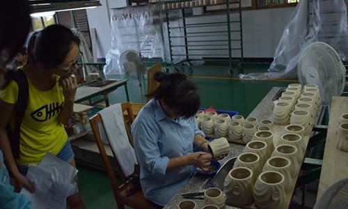 7月11日上午,实践队前往天福集团的所在地——漳浦县盘陀镇。在盘陀镇政府里,根据副镇长黄晓莹和镇政府宣传委员陈艺伟的介绍,队员们了解到天福茶庄的大致生产状况以及盘陀镇茶叶生产的总体情况。接着在副镇长的帮助下,实践队联系到盘陀茶叶协会的会长陈育文,在他的带领下,实践队队员进入当地的茶户家中,更详细地了解茶叶生产的情况以及盘陀镇茶产业的特点。其中,在茶叶协会会长自家的作坊里,实践队队员亲身体验制茶的工序。从会长那队员们也了解到盘陀镇茶的销路和茶产业存在的竞争。下午,实践队首先来到天福茶博物院感受天福集团的茶文化,了解了茶道和茶的深加工。随后到了天福茶工厂、茶具长和食品厂,参观制茶的过程,从采摘到窨制,对茶的生产工艺和生产能力有了更具象的了解。