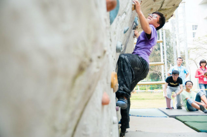 赛前就有不少参加者投入热身准备中,力求在比赛中取得自己满意的成绩。而比赛开始后,首先进行是B组团队接力赛,接力赛要求男女搭配,可以分成横着爬和竖着爬,但是难度相对专业A组来说就简单不少了,这活动队员之间团队配合精神很是重要,彼此之间的默契也很受考验。最终B组的一等奖归属于“NO wo No die”而参加这项比赛的同也感到了乐趣。来自材料学院的冯瑶说道“前段时间来体验的时候感觉很好,加上班级的同学也有参加,我们就组成了一个小队,体验的时候每次都可以爬到第七第八格,但是今天突然叫我要横着爬,成绩就不是很理想,但是参加了活动收获的应该不是成绩,更多是通过户外运动给予我的快乐。”