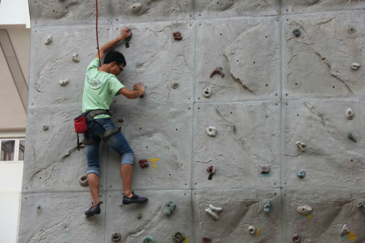 攀岩比赛本身具有竞技性强、趣味性高等特点,适合富有激情和活力、朝气蓬勃的青年人尤其是大学生参与。其中所蕴含的敢于拼搏、永不止步的精神积极向上,具有鲜明的时代特点。4月27日上午8时许,第八届“数星客杯”攀岩挑战赛在我校的人工岩壁举行,比赛分为A组和B组,A组为个人赛,参赛选手为接触攀岩时间大于1年或攀爬水平相对较髙的选手。B组采取团队赛模式,参赛队员则为接触攀岩时间少于一年的选手。