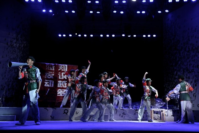我觉得对于他们本身的起点来说是超水平发挥的。他们的起点是没有学过,没有经历过专业训练,对于一般艺术学校的学生来说要经过4年基础学习。在这么短时间里面已经超水平发挥了。这个戏本身运用了很多手段,去弥补演员本身的欠缺。就比如说他们本身学习不够系统,让他们完成的同时又不能够让他们消化不良,把握好这个分寸,在导演构思上、处理上,尽可能运用一些形式或手段帮助他们表演,对他们来说是耳目一新的,很积极地调动了他们参与的能动性,使他们能自发自觉地投入其中,这一点很关键。如果说一开始就给他们提一些根本完成不了的任务,久而久之他们就会排斥。如果要求放低一下,在其他方面帮助他们,让他们很从容很快乐参与其中。最大限度地调动他们的能动性很关键,主动被动出来的效果是不一样的。